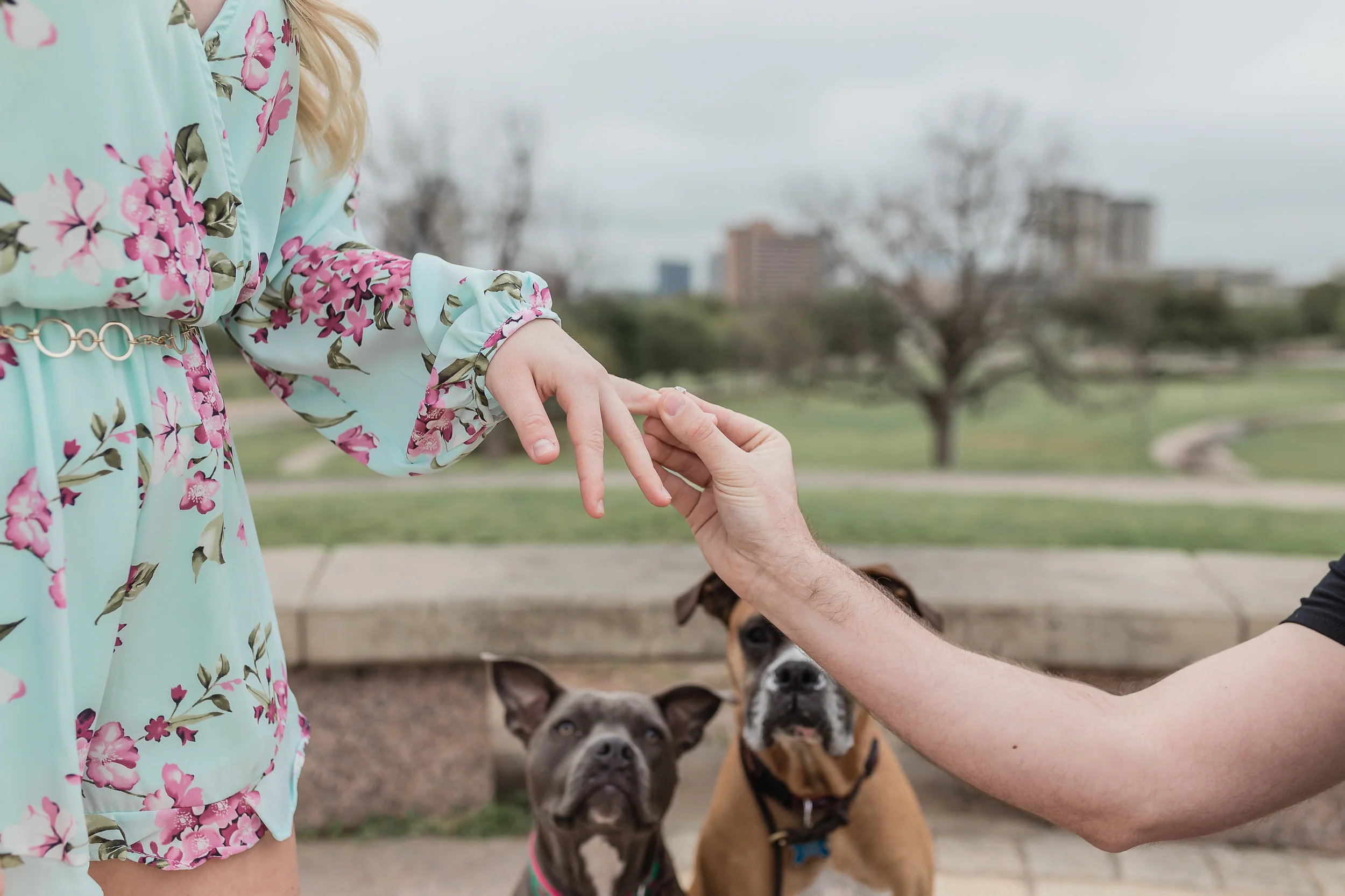 Fast forward to the proposal day and I positioned myself on top of Doug Sahm Hill (a popular spot with a killer view of the Austin skyline) laying in wait. It was a bit gloomier than we were hoping but thankfully we still had a good downtown view. The only issue was that since the proposal was happening on top of a hill, I basically had to be up there with my camera ready and wouldn't have a great place to hide. I opted to pretend I was a tourist taking city shots as they walked up, although I'm not sure I fooled her.